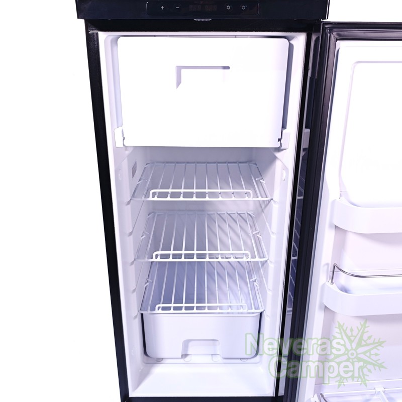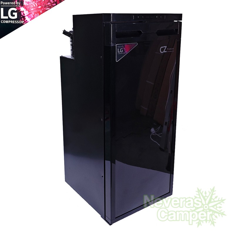 La CoolZone CR90X es una nevera de compresor de la marca LG con 90 litros de capacidad interior, con una muy buena eficiencia, ideal para furgonetas camper, caravanas y autocaravanas. Funciona a 12V y 24V, e incluye congelador independiente, pantalla LED, puerta reversible y un sistema de protección de batería de tres niveles. Silenciosa, con estantes organizadores y portabotellas, ofrece un excelente rendimiento incluso en temperaturas extremas.