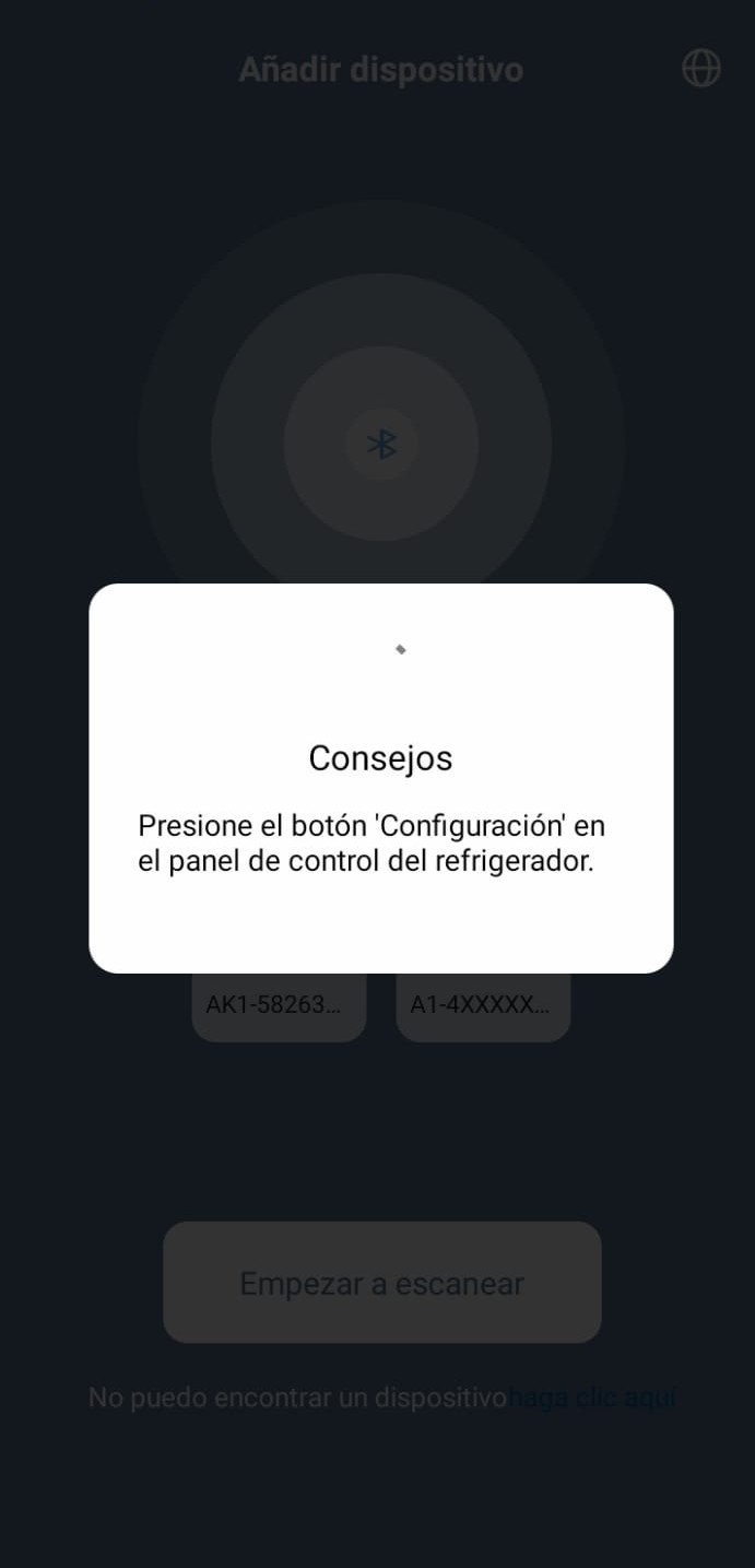 Una vez tengamos seleccionado el idioma procederemos a seleccionar nuestra nevera.